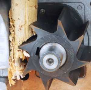 Для приведения ножей в движение потребуется болгарка мощностью 1,5 КВт. Ножи изготавливают из пильного диска по бетону, с которого обрезают лишние части, оставляя крестообразную конструкцию. Противоположные ножи слегка загибают – одну пару вверх, другую вниз.