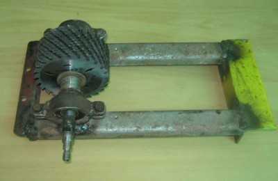 2. На ось-шпильку надевается шкив (от генератора ВАЗ или от помпы). Для вращения оси используются также два подшипника промежуточного вала ВАЗ с внутренним диаметром 20мм.