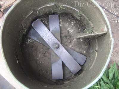 В общем-то, процесс измельчения похож на работу кухонного комбайна. В ведре расположен острейший нож, вращающийся по кругу очень быстро и рассекающий траву. Сделатьизмельчитель травы и веток таким способом, необходимо подготовить дрель с двумя режимами «Темп», мощностью 850 Вт. Очень важную роль играет именно нож. Он должен быть правильно заточенным и всегда быть чистым.