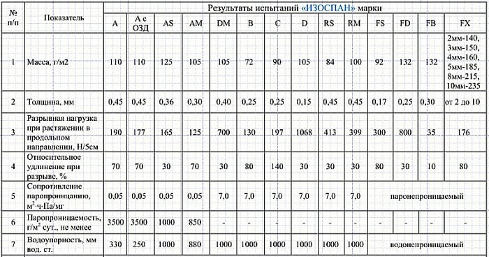 В частности, выделяют следующие виды Изоспана: