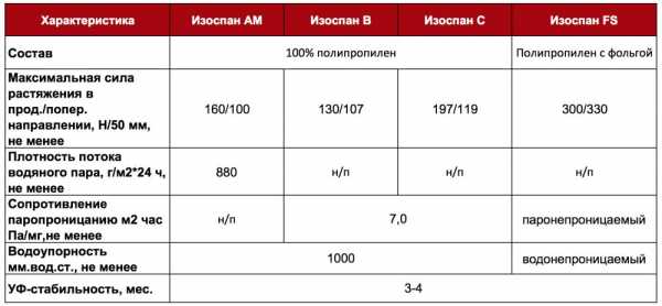 Гидро- и пароизоляционные мембраны «Изоспан» и их основные характеристики
