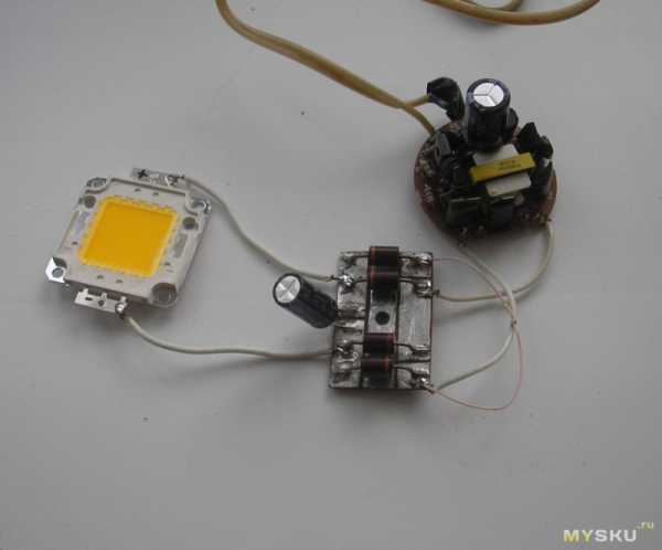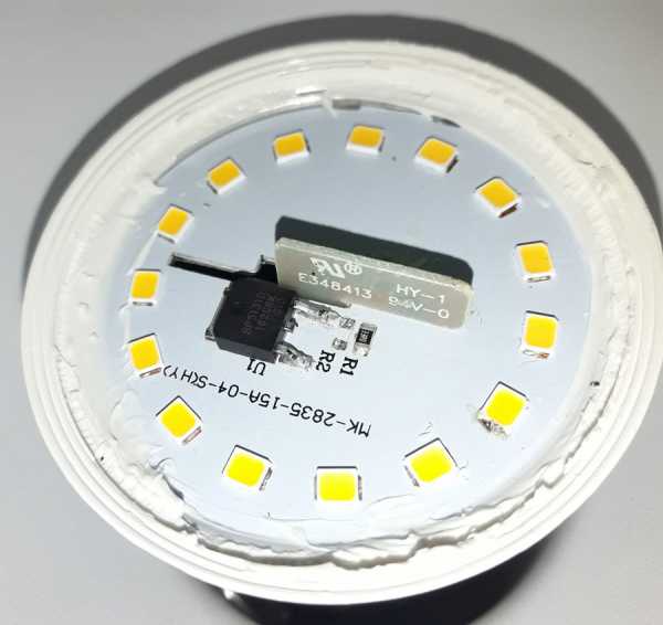 Кстати, теплоотводящая подложка светодиодов НЕ соединена ни с каким выводом. Это хорошо с учётом отсутствия гальванической развязкой с сетью.