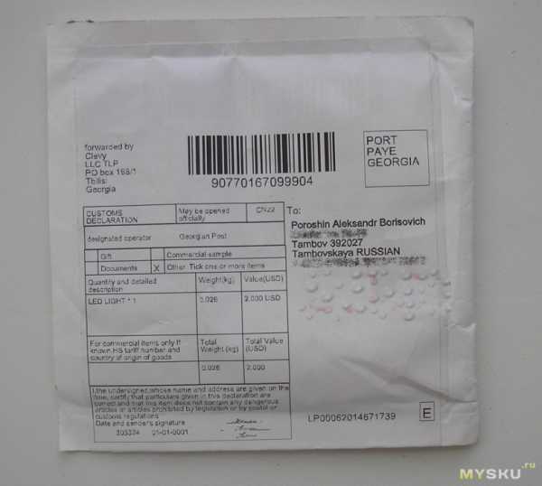 Стандартный пакет с пупыркой внутри, кинули прямо в ящик. Почта Грузии, однако. Наверное, так удобнее.