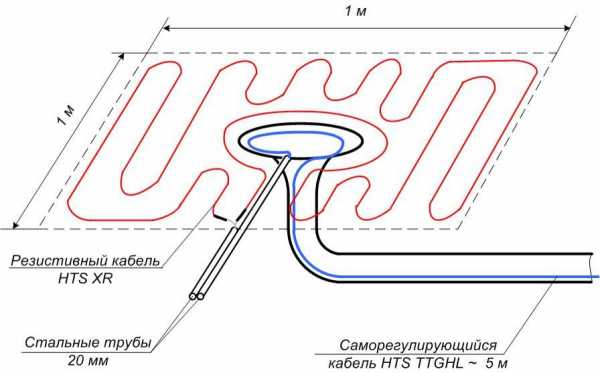 Пример использования греющего кабеля для труб