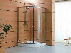 - Угловая душевая кабина – это самый компактный тип таких сооружений. Они наиболее часто устанавливаются в миниатюрных ванных комнатах. Благодаря их форме, зона принятия водных процедур занимает совсем немного места. Такие кабины могут быть круглыми или квадратными. В первом случае раздвижная дверца имеет полукруглую форму, а во втором – образует квадрат. Угловые душевые кабины устанавливаются в углу ванной между смежными стенами. Особенно актуальна такая фора для маленьких квадратных санузлов.
