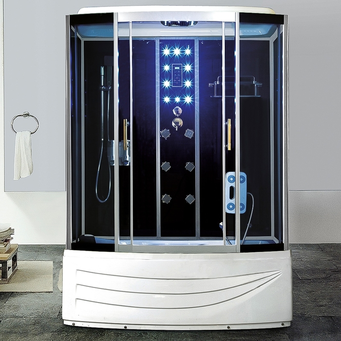 А если в нее залить аромомасло, то кроме бани вы получите еще и аромотерапию. Гидробокс с парогенератором имеет вентилятор, который распределяет созданный пар по душевой равномерно.