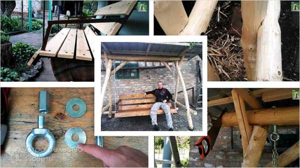 Сейчас рассмотрим пример изготовления стойки, напоминающей форму буквы «А». Такая стойка достаточно надежна, а использовав крепкие бревна, вы сможете повесить сиденье любой формы, размера и из любого материала. Для работы вам необходим будет тот же набор строительных инструментов, что и для изготовления сиденья. Процесс работы состоит из следующих этапов: