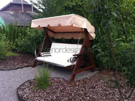 Классическим же вариантом являются садовые качели, изготовленные из дерева. Дерево прекрасно вписывается в обстановку любого садового участка. В зависимости от сложности конструкции и дороговизны породы, качели могут быть как самыми простыми, так и премиум-класса.