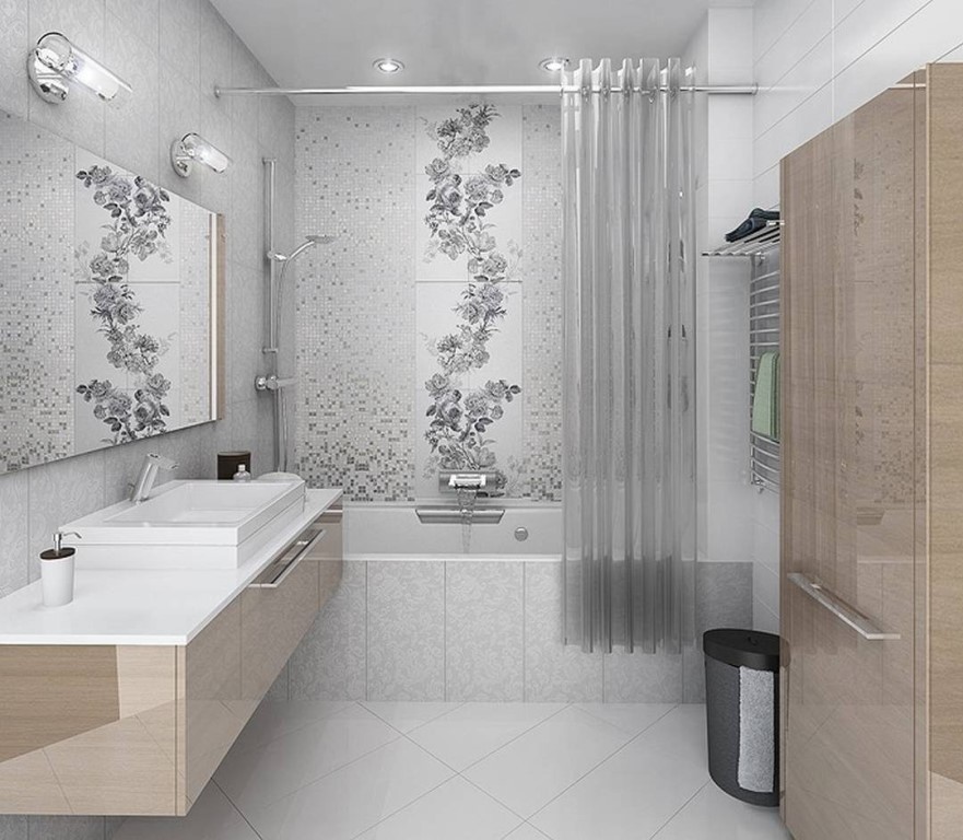 Если в подборе оборудования и планировки пространства особого разнообразия нет, то фантазию с точки зрения плитки ограничивать не стоит. Производители предлагают огромный выбор цветов (от монохромных коллекций до узорчатых моделей) и размеров (от мозаики и классики 10×10 см до крупных квадратов и архитектурных моделей). Эти и другие параметры должны соответствовать общим целям: визуальное расширение пространства, внесение в него большей свободы и света.