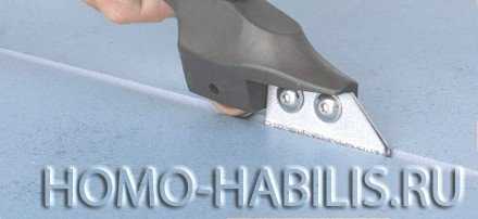 Для выполнения данной манипуляции лучше использовать специальный инструмент — плиткорез, имеющий алмазный или победитовый резец. Помещаем кафель на ровную и гладкую поверхность, а затем делаем надрез по предварительно намеченной линии. Кафель режут по направлению к себе. После того, как Вами сделан надрез, нужно сломать плитку. Берем ее за края и тыльной стороной ударяем о ребро доски. Очень важно, чтобы удар пришелся именно по линии надреза. В результате правильно выполненной работы получаем часть плитки с ровными краями.