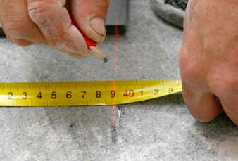 1. Для проведения этой операции потребуются обычная рулетка, которую прикладывают строго по вертикальным и горизонтальным осям. Результаты замеров фиксируют и рассчитывают на бумаге. При снятии размеров пола первым делом проверяют углы помещения. Если они неравны, нужно заранее предусмотреть правильное расположение неполных по размерам плиток в местах примыкания к стенам или другим конструктивным элементам помещения.