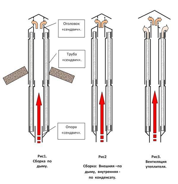 Итак, давайте узнаем, как сэндвич-трубы будут соединяться друг с другом. При покупке сразу можно заметить, что один конец трубы будет иметь чуть меньший радиус, он называется нагруженным. Затем он вставляется в предыдущую трубу. А вот как именно соединить элементы, вы решаете сами. Уже упоминалось, что это можно сделать «дымовым» или «конденсатным» способом. Для отвода конденсата лучше дополнительно установить тройники.