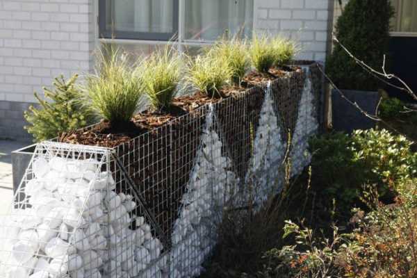 Что такое габион. По сути, это сетчатая конструкция, заполненная камнями. Но сегодня что только не используют для заполнения: кирпичный бой, куски железобетона, старую керамическую черепицу, крупный строительный мусор, металлолом и так далее. Для ландшафтного дизайна лучше использовать каменное наполнение, которое переживет не одно поколение владельцев загородного участка.