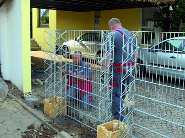 В этой фотоинструкции показано, как сделать простой забор из габионов: