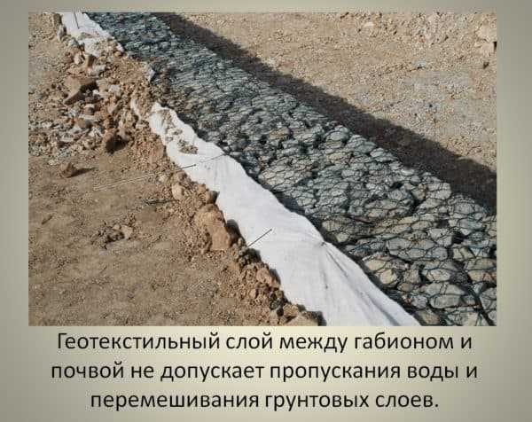 - наполнитель – камни или другие вышеперечисленные материалы, которые превышают габариты ячеек сетки.