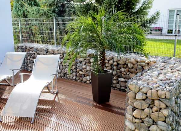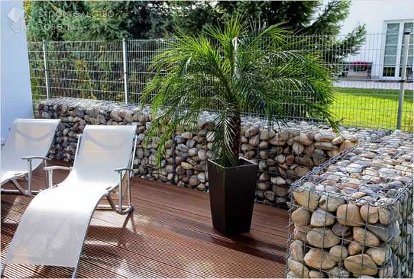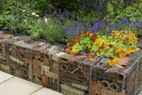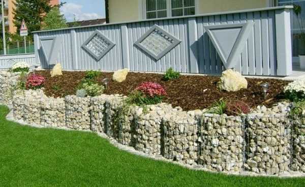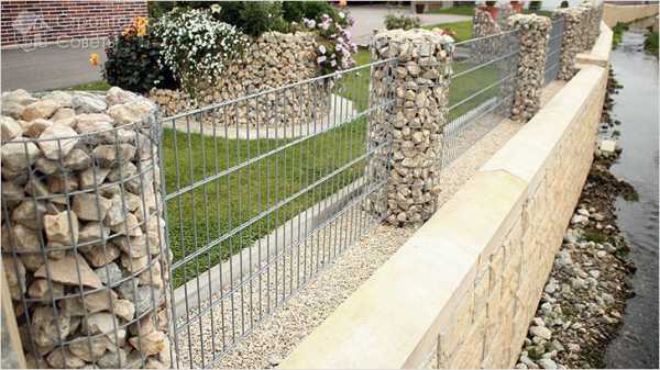 Если вы относитесь к ценителям оригинальных идей, то рекомендуем вам ознакомиться с габионами, как материалом для изготовления заборов. Это своего рода насыпные ограждения, сохраняющие природную привлекательность внутреннего наполнителя, например, камня или дерева. Такие ограждения отлично сочетаются с декоративными цветами и газонами.