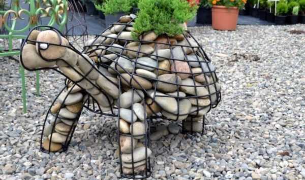 Маленьким детям наверняка понравятся габионы в виде животных, забавных фигур или персонажей мультфильмов. Их можно расставить по всему саду, особенно в его укромных уголках.