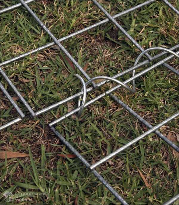 Если сварочного аппарата нет, если вы сами не владеете навыками работы с ним, то можно попробовать связать пруты между собой вязальной проволокой. Это займет больше времени, но качество соединения будет не ниже сварного. Во всяком случае, ГОСТом подтверждено, что таким способом можно изготавливать армирующий каркас для фундаментов. А почему нельзя собирать так и габионы. Главное для этой конструкции – больше точек крепления.