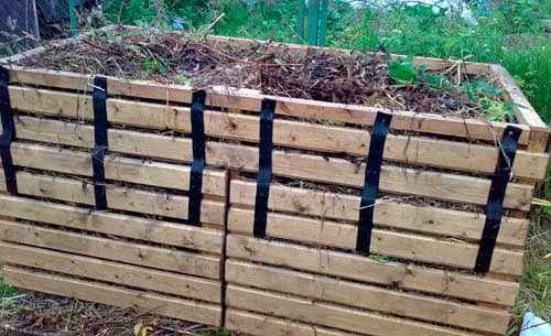 Короб тоже нужно укрыть сверху либо рубероидом, либо шифером. В течении 2х-3х лет происходит процесс гниения, за это время вся наполненная масса превращается в компост, за исключением верхнего слоя, который укладывается в самый низ новой компостной кучи.
