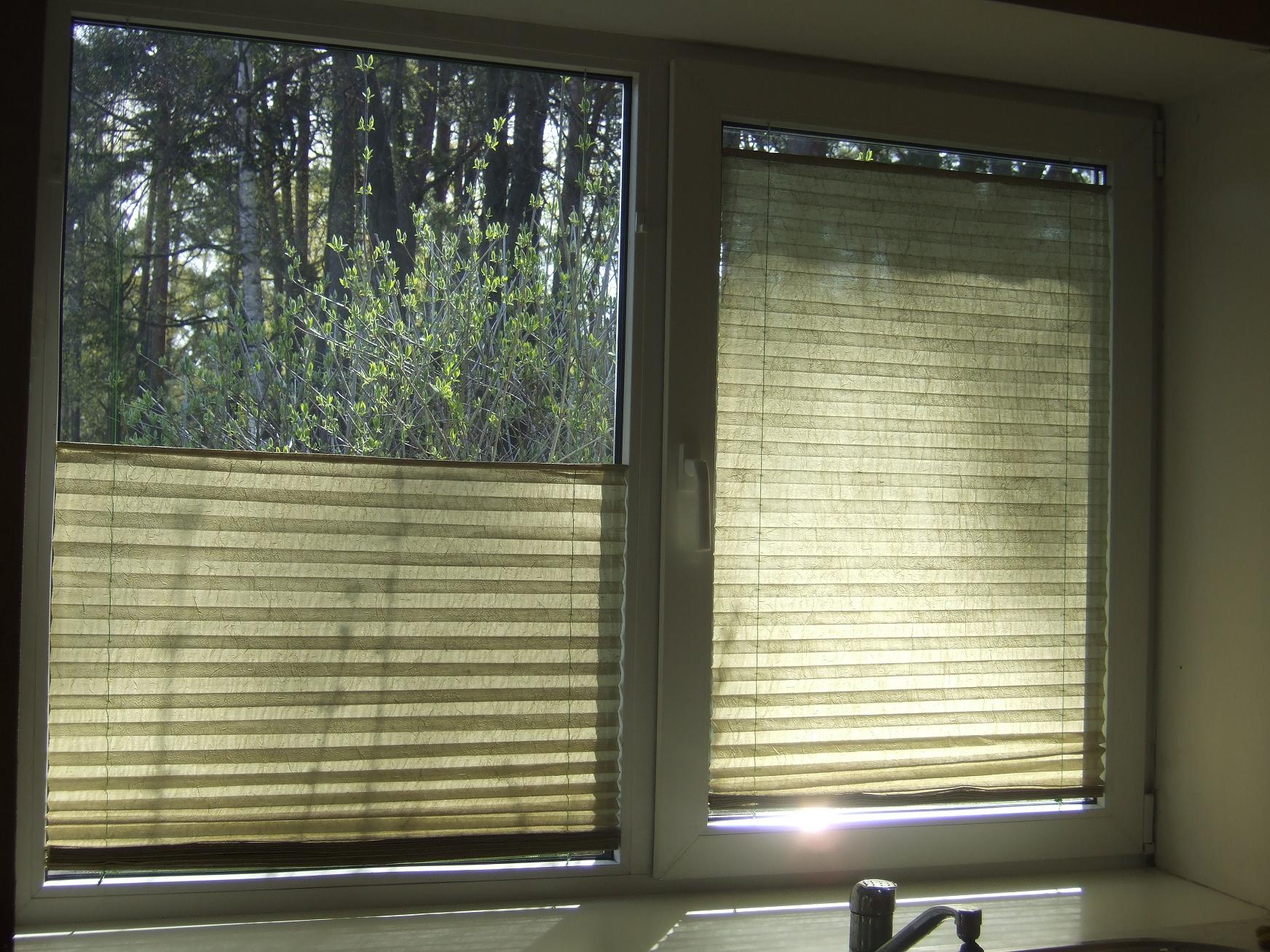 Подойдет для нестандартных окон, находящихся неглубоко в стене. Поможет лучше затемнить помещение. Монтаж может предусматривать специальные кронштейны или крепление к потолку; - к оконной раме. Такой способ крепления особенно подойдет для пластиковых окон. Шторки можно прикрепить к створкам с помощью специальных фиксаторов. Открывать и закрывать окна будет намного удобнее.