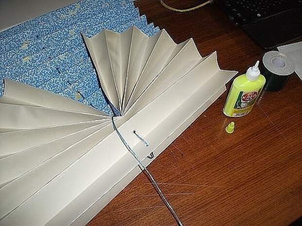 Веерные жалюзи включают этапы, аналогичные изготовлению жалюзи-гармошке. Различие заключается в закругленном конце шторки, напоминающем павлиний хвост. Для изготовления шторок следуйте инструкции: