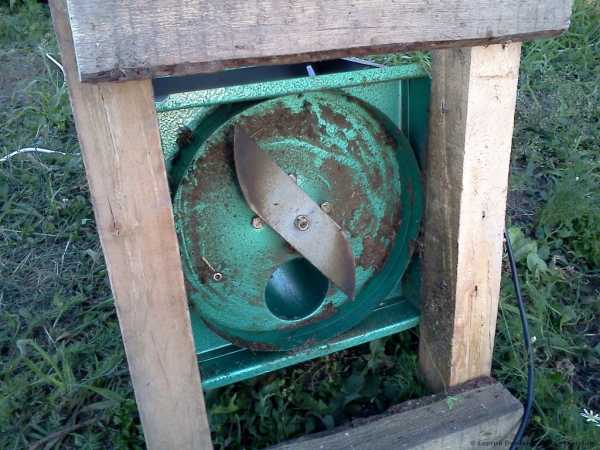 - Другие подручные материалы. Изготовить измельчитель можно из чего угодно: старой электропилы, насоса, двигателя от того же пылесоса или стиральной машины. Суть устройства в том, чтобы ножи с определенной скоростью вращались внутри закрытого контейнера. Двигатель специальными фиксаторами крепится к корпусу.