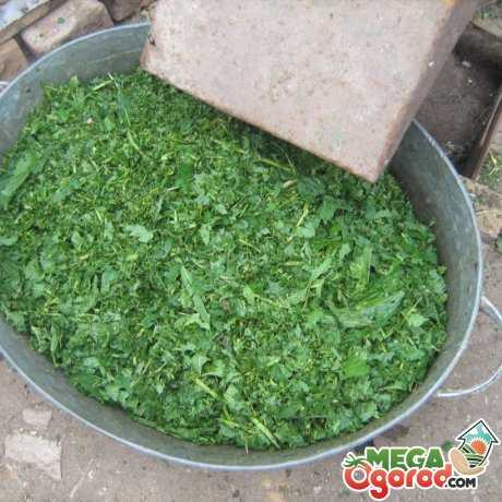 Измельченные силос, выполненный на самодельном устройстве, пойдет на корм птице и скоту или может использоваться для мульчирования посадок.