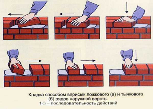 ΠΡΡΠ°Π»ΡΠ½ΡΠ΅ ΡΡΠ΄Ρ Π²ΡΠΏΠΎΠ»Π½ΡΡΡΡΡ ΠΏΠΎ ΡΡΠΎΠΉ ΠΆΠ΅ ΡΡ Π΅ΠΌΠ΅: Π½Π°ΡΡΠ³ΠΈΠ²Π°ΡΡ Π½ΠΈΡΠΊΡ ΠΌΠ΅ΠΆΠ΄Ρ ΡΠ³Π»ΠΎΠ²ΡΠΌΠΈ ΡΠ»Π΅ΠΌΠ΅Π½ΡΠ°ΠΌΠΈ Π½Π° Π²ΡΡΠΎΡΠ΅ ΡΡΠ΄Π°, ΡΠΊΠ»Π°Π΄ΡΠ²Π°ΡΡ ΠΏΡΡΡΠΎΠΊ, Π·Π°ΡΠ΅ΠΌ ΡΠ°ΡΡΠ²ΠΎΡ ΠΈ ΠΊΠΈΡΠΏΠΈΡΠΈ. Π‘Π»Π΅Π΄ΡΠ΅Ρ ΡΡΠ΅ΡΡΡ, ΡΡΠΎ ΡΠΈΡΠΈΠ½Π° Π³ΠΎΡΠΈΠ·ΠΎΠ½ΡΠ°Π»ΡΠ½ΡΡ ΡΠ²ΠΎΠ² Π΄ΠΎΠ»ΠΆΠ½Π° ΡΠΎΡΡΠ°Π²Π»ΡΡΡ 10-15 ΠΌΠΌ, Π° Π²Π΅ΡΡΠΈΠΊΠ°Π»ΡΠ½ΡΡ ΡΡΡΡ ΠΌΠ΅Π½ΡΡΠ΅ β ΠΎΡ 8 Π΄ΠΎ 10 ΠΌΠΌ. Π’Π°ΠΊΠ°Ρ ΠΊΠ»Π°Π΄ΠΊΠ° Π±ΡΠ΄Π΅Ρ ΡΠΌΠΎΡΡΠ΅ΡΡΡΡ Π½Π°ΠΈΠ±ΠΎΠ»Π΅Π΅ ΠΏΡΠΈΠ²Π»Π΅ΠΊΠ°ΡΠ΅Π»ΡΠ½ΠΎ. ΠΠΎΠ·Π»Π΅ Π΄Π²Π΅ΡΠ½ΡΡ ΠΈ ΠΎΠΊΠΎΠ½Π½ΡΡ ΠΏΡΠΎΠ΅ΠΌΠΎΠ² ΠΊΠΈΡΠΏΠΈΡ ΠΎΠ±ΡΠ΅Π·Π°ΡΡ ΠΈ ΠΊΡΠ΅ΠΏΡΡ ΡΠ°ΠΊ, ΡΡΠΎΠ±Ρ Ρ Π΄ΡΡΠ³ΠΎΠΉ ΡΡΠΎΡΠΎΠ½Ρ Π½Π΅ ΠΏΡΠ΅ΡΡΠ²Π°Π»ΡΡ ΡΡΠ΄, ΡΠΎΠ³Π΄Π° Π½Π°Π΄ ΠΏΡΠΎΠ΅ΠΌΠΎΠΌ ΡΠΈΡΡΠ½ΠΎΠΊ ΠΊΠ»Π°Π΄ΠΊΠΈ ΠΎΡΡΠ°Π½Π΅ΡΡΡ ΠΏΡΠ°Π²ΠΈΠ»ΡΠ½ΡΠΌ.