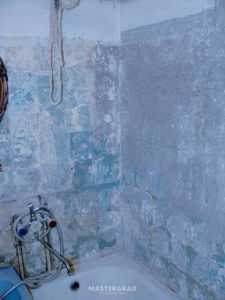 - Со стены удаляют прежнее покрытие, обнажив штукатурку. Если приходится иметь дело с конструкцией, окрашенной масляной краской, то ее либо удаляют полностью, либо делают множественные частые и глубокие насечки, стремясь обеспечивать высокий уровень качества сцепки штукатурного и клеящего состава с основанием. Как класть плитку на окрашенную стену — читайте на нашем сайте.