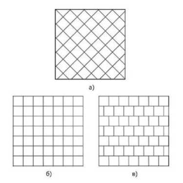 Схема раскладки зависит от количества материала, площади комнатыЗадумываясь над тем, как правильно клеить плитку, стоит уделить внимание различным вариантам раскладки отдельных элементов на поверхности стены. Для создания декоративного покрытия используют несколько способов: