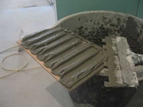 - Для создания раствора, можно использовать смесь цемента и песка с добавлением клея. Или приобрести готовый состав в магазине.