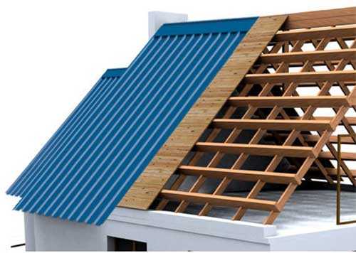 1) Стропила для профлиста имеют определенный градус уклона (не меньше 8). Как правило, данный угол равен подъему на 1 метр при протяженности крыши на 7 метров. Стоит отметить, что чем больше уклон крыши. тем будет меньше требований к креплению стыков между профлистами. При покатой плоской крыше (меньше 8 градусов), разумнее будет вызвать специалистов для установки кровли, потому что самостоятельно добиться герметичности укладки при меньшем угле уклона будет достаточно тяжело.