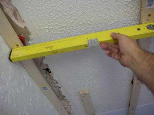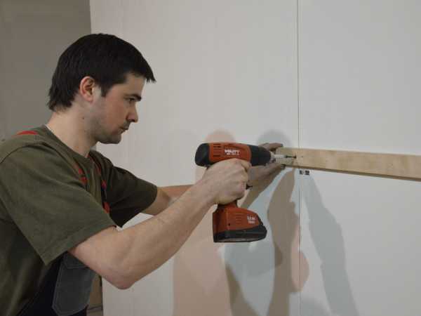 - Стойка прикладывается к стене и очерчивается карандашом.
