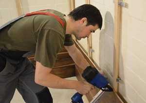- Чтобы обеспечить надежное крепление плинтуса, самый нижний горизонтальный профиль следует крепить к полу.