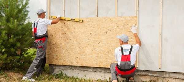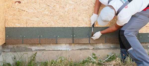 Листы укладываются в разбежку с отступом примерно 5-10 мм от углов здания и 3 мм запасом друг от друга, учитывающим возможные температурные расширения древесины.