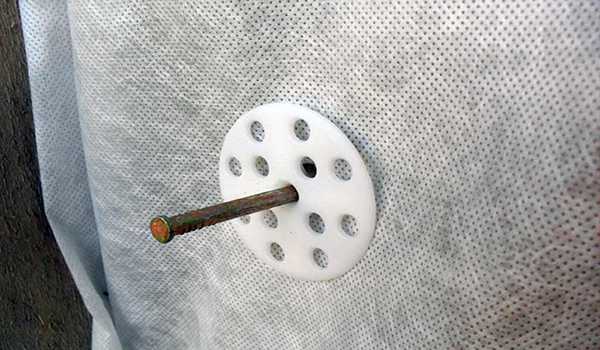 На специальные дюбеля, которые внешне напоминают грибки со шляпкой, крепят все виды утеплителей начиная от пенопласта и заканчивая минеральной ватой. Например, плиту из пенопласта, сначала крепят к стене клеем, а после фиксируют с помощью нескольких зонтов.