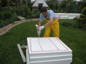 Монтировать такой утеплитель очень легко, но особенностью утепления стен этим видом теплоизоляции является то, что нужно предварительно тщательно выровнять поверхность, чтобы листы пенопласта прилегали максимально плотно. Выравнивать стены нужно при помощи штукатурки, достаточно будет нанести ее в два нетолстых слоя.