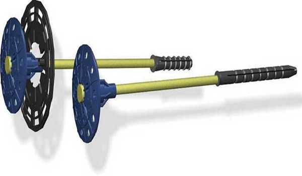 Второй по распространенности способ фиксации утеплителя на стенах. Иногда монтаж теплоизоляции на дюбеля, выступает как основной метод, но чаще, он является дополнением к монтажу на клей, для более надежного закрепления.