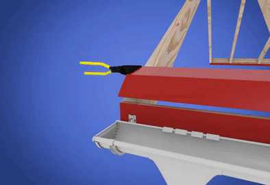 Карнизные планки закрепляются по завершении строительства кровли, но до начала установки кровельного покрытия. Однако, при монтаже не стоит забывать об одной важной особенности: наружное покрытие капельника — это полимерный слой, и если монтаж производится при помощи болгарки, он может оплавиться. Поэтому при укорачивании этого элемента следует использовать ножницы по металлу.