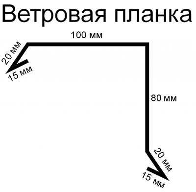 Это профильное изделие из оцинкованного металла, изготавливаемое на специальном оборудовании. В отличие от карнизного элемента, торцевая планка устанавливается на торцах скатов крыши, закрепляясь на торцевых досках. Помимо обеспечения герметичности кровли, торцовая конструкция защищает металлическую кровлю от ветра, поэтому ее часто называют ветровой планкой.