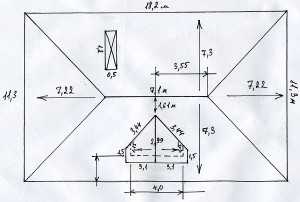 Чтобы не ошибиться в количестве приобретаемого материала, надо предварительно сделать расчет потребности. Для этого нужно выполнить замер площади кровли, перенести размеры на бумагу. Узнать геометрические размеры и квадратуру одного листа железа. Сделать раскладку листов на схеме. Разделив площадь кровли на квадратуру одного листа, узнаем необходимое количество полотен в чистом виде. Сюда надо добавить количество отходов при раскрое и примерно 10 % на замковые соединения. Так можно рассчитать железо на простую крышу. Если она имеет сложную конфигурацию, то расчет усложнится. Площадь кровли нужно определять сложением площадей отдельных ее участков. И на такую кровлю количество отходов на подкрой увеличится.