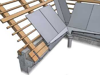 Самым сложным этапом является устройство воротника для тубы дымохода. Он изготавливается предварительно, по форме и размерам трубы. С металлическими листами воротник соединяется стоячими фальцами.