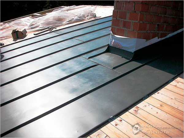 На крыше заготовки соединяются в общую плоскость с помощью стоячего фальца. Для базового покрытия сборные элементы необходимо раскладывать полосами.