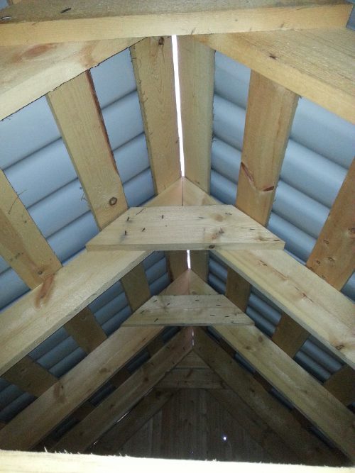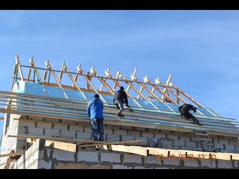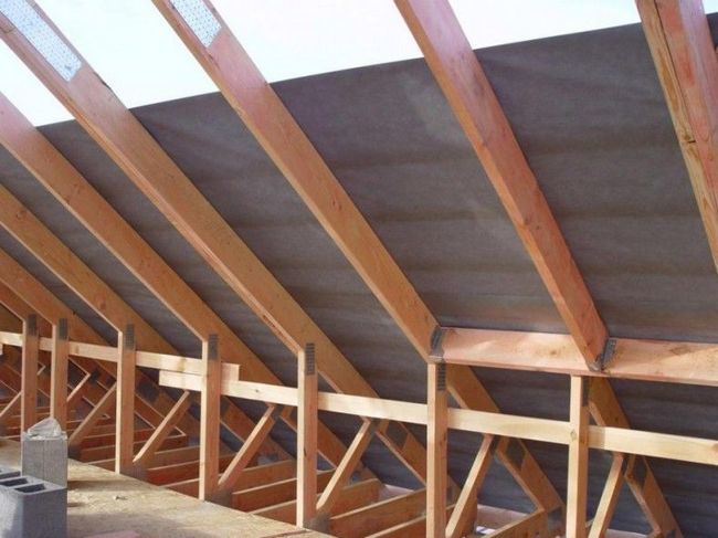Когда фермы подняты, крыша покрывается фанерой или OSB, что придает кровле огромную жесткость.
