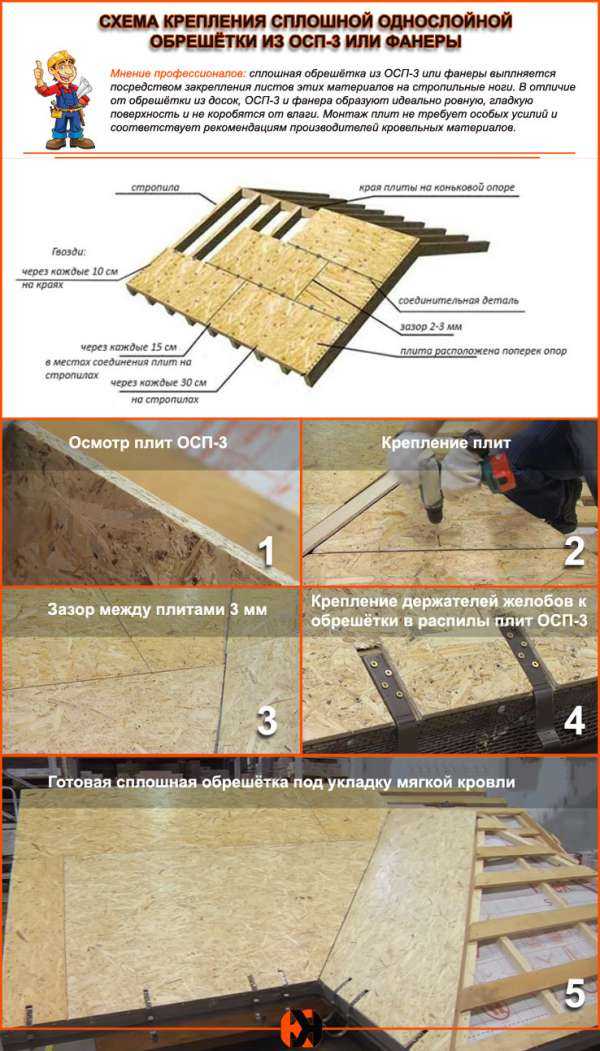 Что допустимо при сборке обрешётки под мягкую кровлю:
