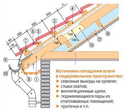 - нижние элементы ендовы, места примыкания к трубам, стенам, вентиляционным выходам;