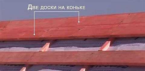 - Планку конька нужно с 2 сторон обить коньковым брусом.