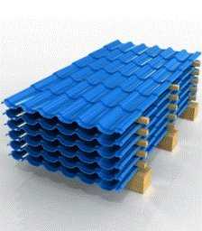 Как правило, листы металлочерепицы размещают на земле в виде стопки, проложенной деревянными рейками. Класть листы один на другой без какой-либо прокладки не рекомендуют, поскольку при этом их защитное покрытие может быть повреждено. Если кровля имеет большую площадь или находится слишком высоко, а также при недостаточном количестве монтажников на крыше сооружают стеллаж для временного складирования кровельных листов.