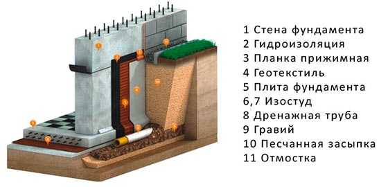 А вот этот вид дренажа желательно строить-таки вместе с фундаментом. Он закладывается непосредственно возле его стенок и оправдывает себя, когда здание опирается прямо на водоупорные пласты грунта. Как правило, пристенный дренаж дешевым бывает крайне редко.