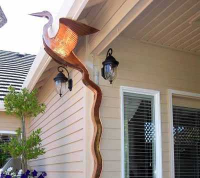 Вместо традиционного водостока с этой же задачей хорошо справляются и водосточные цепи, которые можно сделать и самому — это, по сравнению с водосточной трубой, несложно и недорого.